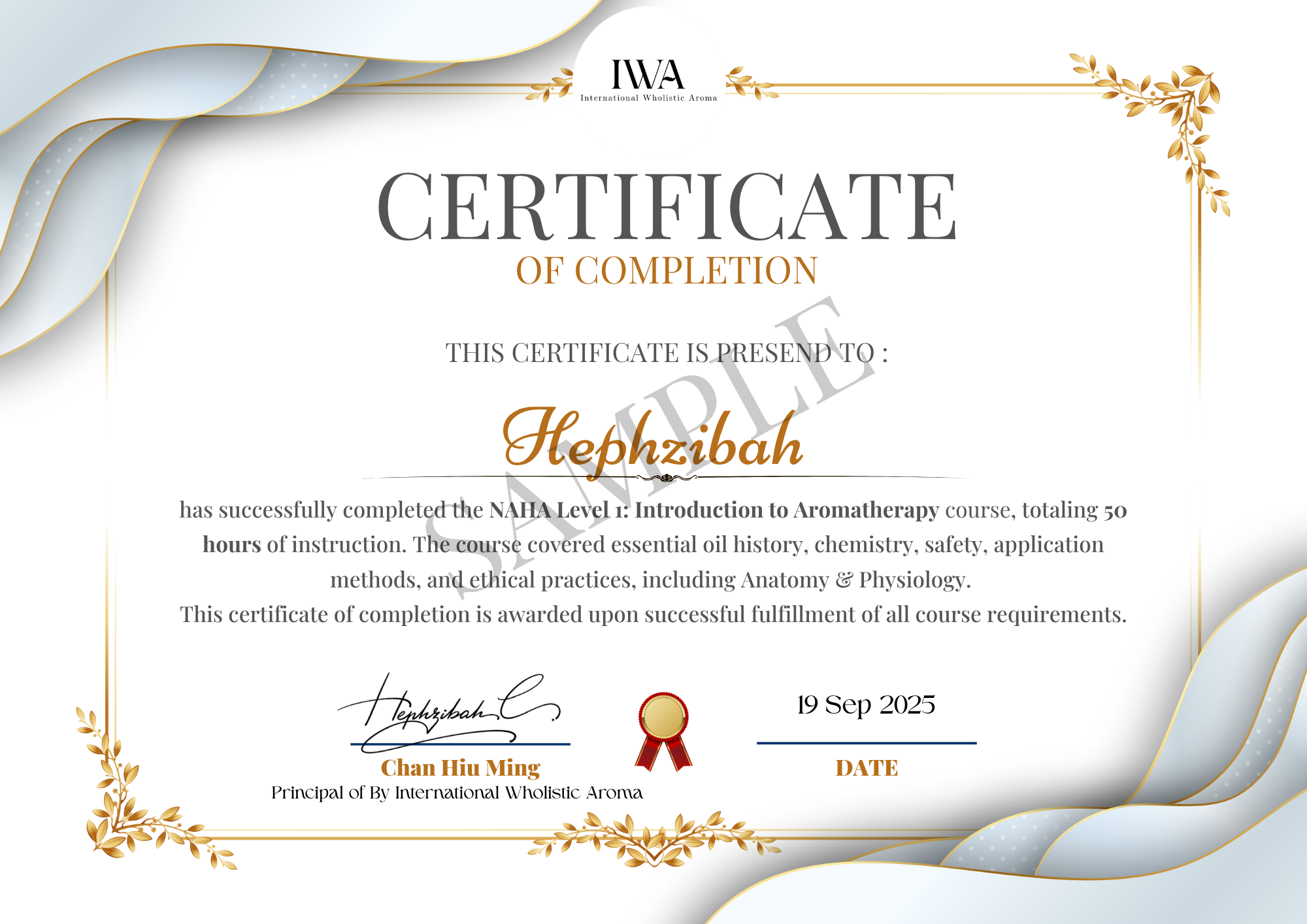 將獲頒「IWA 芳香療法初階課程證書」,